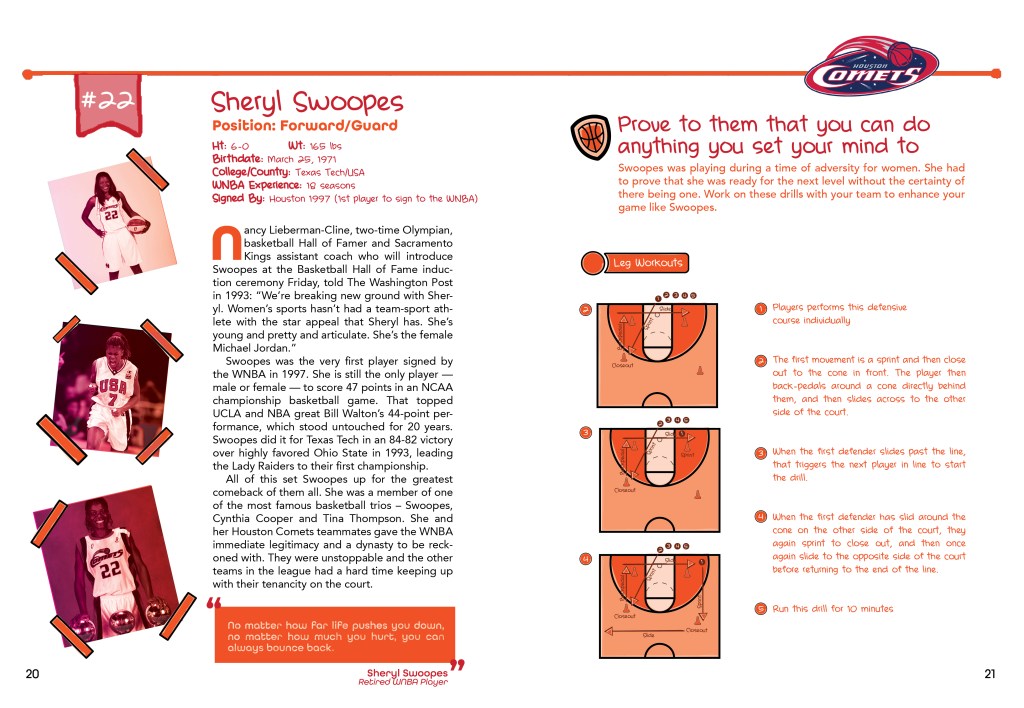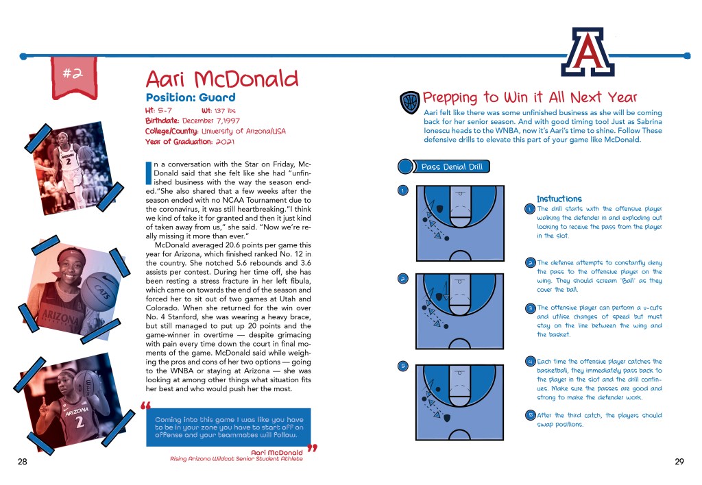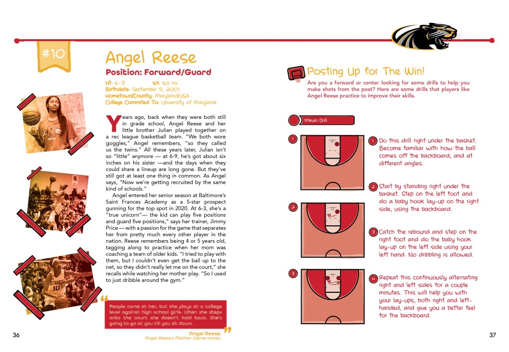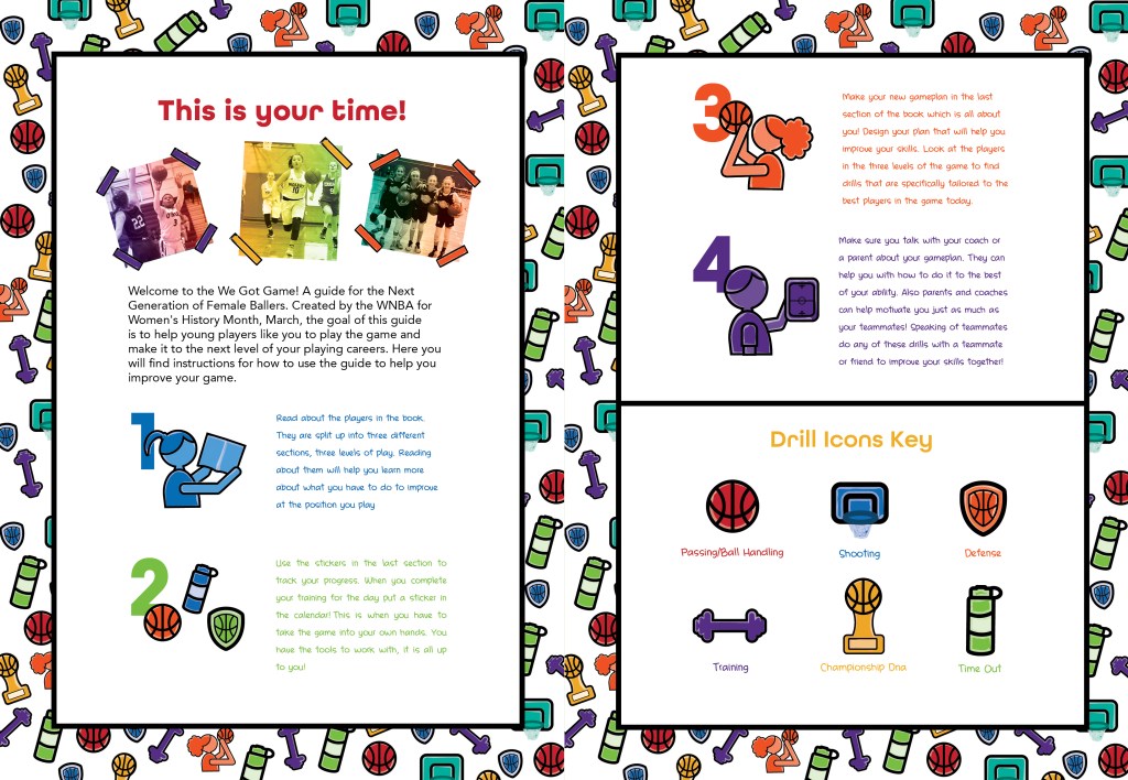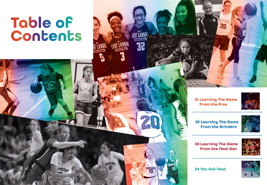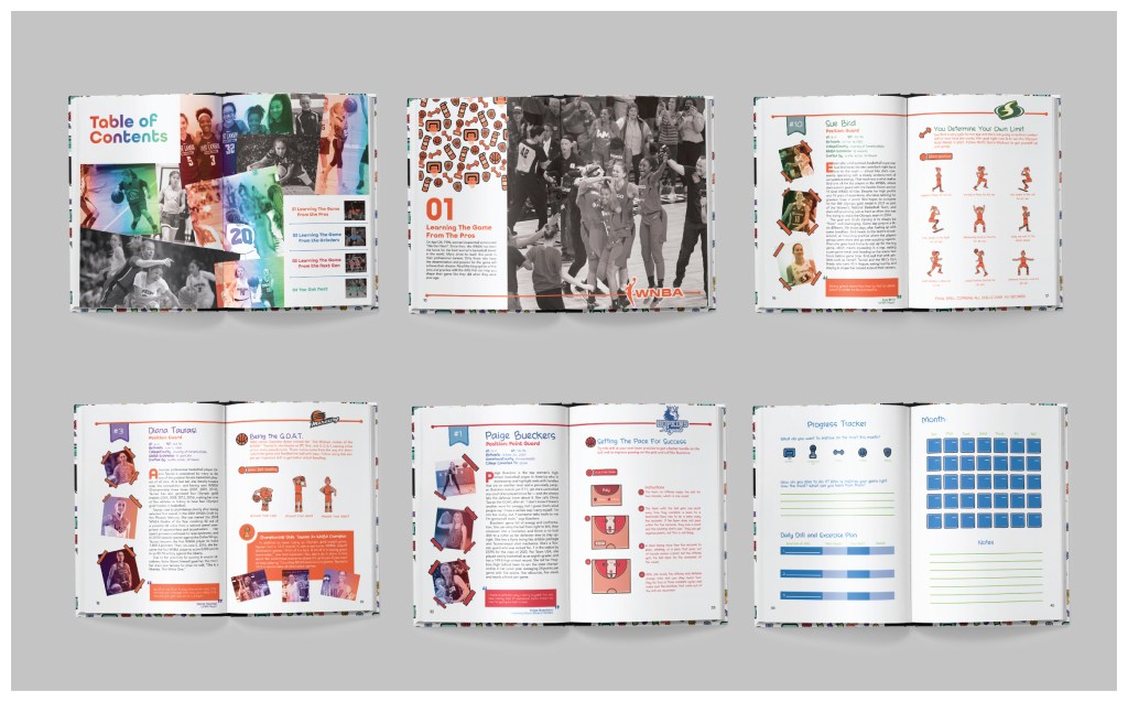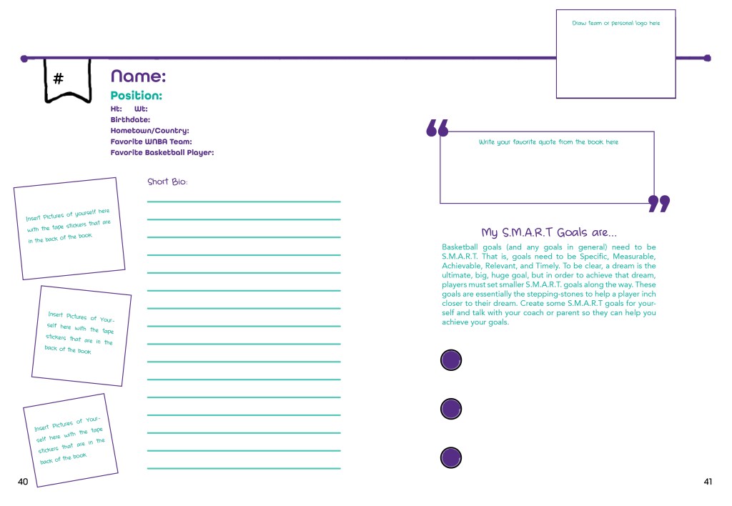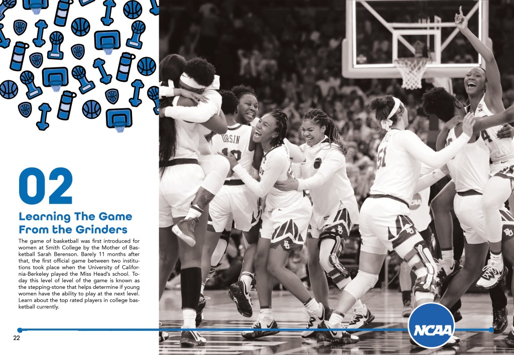 An interactive guide that enables young girls to improve on their basketball skills by learning from the pros at every level. The book is broken up into three sections; Pros, College and High School so that girls can have drills breaking down the game at each level of play. Then the last section is a fill-in game plan so the girls can track their own progress.
